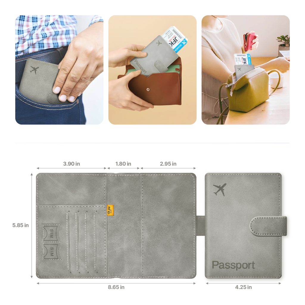 Passport Holder Cover Wallet, RFID Blocking Travel Document Organiser, Must Haves Travel Accessory, Leather Wallet Card Case – Essentials for Men & Women