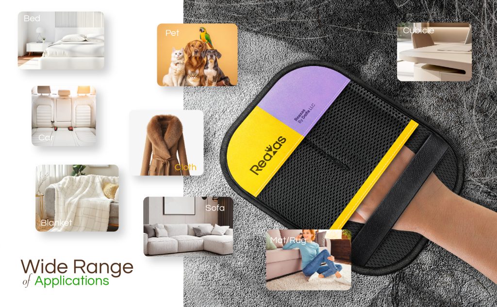 Reaxas gloves use electrostatic technology combined with dual-direction bristles to attract and trap pet hair, lint, and dust.
