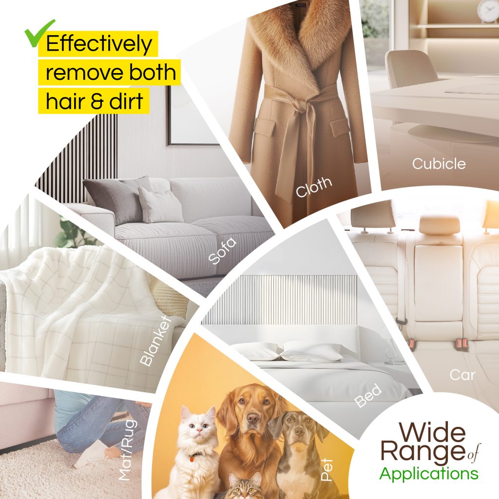 Extra-large size 7.1 × 9.4 in / 18 × 24 cm covers more area with each swipe, removing pet hair, lint, and dust quickly from furniture, rugs, and fabrics.