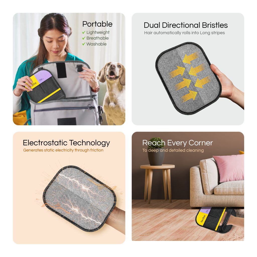 • Electrostatic technology lifts stubborn pet hair effortlessly