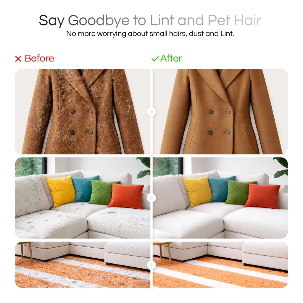 Perfect for: Sofas • Rugs • Beds • Blankets • Clothing • Car Interiors • Pets • Pet Supplies