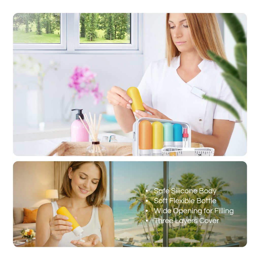 TSA Approved Travel Toiletry Containers – Leak-Proof Silicone Refillable Bottles